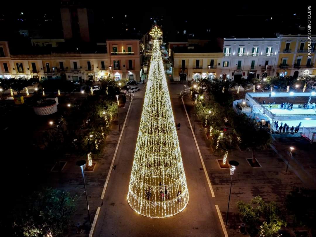 realizzato con luminarie pugliesi in legno intagliato. Un progetto monumentale,